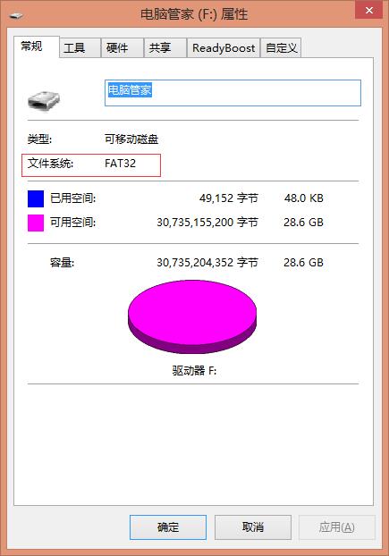 3, 我们可以发现,此时U盘的格式为FAT32;