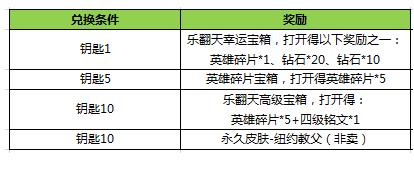 王者荣耀乐翻天宝箱怎么出,乐翻天宝箱每天可以获得多少个,王者荣耀乐翻天宝箱可以开出钻石和英雄碎片等等奖励,而玩家通过对战掉落的乐翻天宝箱数量有限,王者荣耀乐翻天宝箱可以通过兑换和掉落获得,每日获得数量有限,小编为大家带来的是王者荣耀乐翻天宝箱获得攻略,感兴趣的朋友可以和小编一起看看哦! 王者荣耀乐翻天宝箱获得攻略 活动时间:2月14日版本更新后~2月26日 奖励详情: 1.2月14日版本更新后~2月25日,每日登录游戏即可在活动面板领取“乐翻天钥匙”1个,集齐10个钥匙即可兑换非卖永久皮肤-纽约教父或英雄碎片*5+4级铭文一枚,集齐5个钥匙可兑换英雄碎片*5,更多好礼等你拿~ 2.兑换开启时间:2月14日版本更新后~2月26日,逾期不予兑换(2月26日只提供兑换不再产出钥匙) 乐翻天-对战掉宝箱 活动时间:2月18日~2月20日 活动期间,每日参与游戏对战(5v5匹配、排位或娱乐模式)结束后,均可获得乐翻天宝箱掉落,随机开启:英雄碎片*2、钻石*20或铭文碎片*20等好礼。每日掉落上限为3个。 王者荣耀乐翻天宝箱每天可以获得多少个? 每天钥匙兑换一个,然后对战可以最多获得3个,总计是每天可以获得4个乐翻天宝箱 |