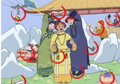 1、这是甄嬛找茬系列中的第12关,我们需要找到10处不和谐,基本都是现代物品
