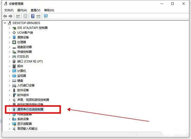 2、在设备管理器窗口中,找到并点击“通用串行总线控制器”;