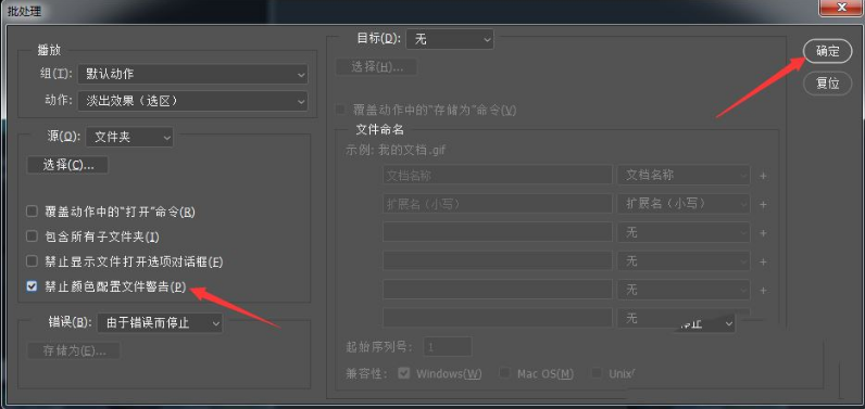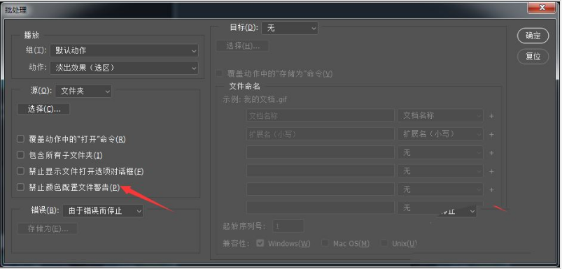 勾选上禁止颜色配置文件警告选项之后,点击确定