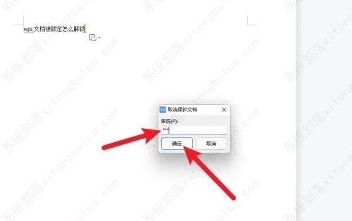 输入文档正确的解锁密码点击选择确定完成解锁。