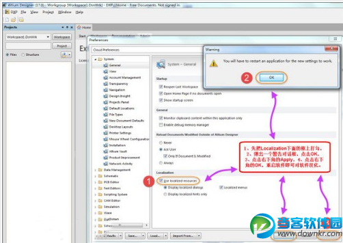 关闭弹出的对话框后,我们看到的界面就是待破解的界面 ,找到 Add standalone license file, 弹出加载 license 文件对话框,加载之前复制过去的和谐文件: 汉化教程: 1、打开软件,进入到软件界面里时,点击左上角的DXP 菜单 ,选择 2、弹出一个对话框,我们把本地化语言的复选框打勾即可。 . 以上就是当客小编整理的关于Altium Designer 17中文破解安装教程,更多软件教程欢迎关注当客下载站。 |