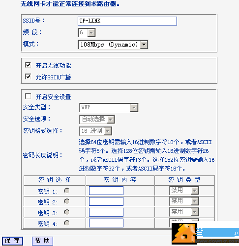 这个图片是无线参数的基本设置,这里主要说明的是安全设置,当然你要开启了才可以~~HOHO