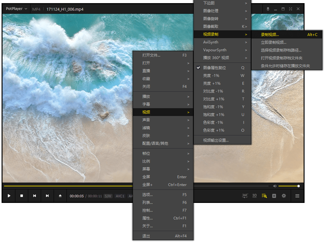 potplayer怎么用?PotPlayer是一款专业的视频播放器,拥有强大的内置解码器,支持主流音视频格式的文件,功能十分强大。有小伙伴知道PotPlayer如何使用吗,下面小编就给大家详细介绍一下PotPlayer的使用方法,感兴趣的小伙伴快来和小编一起看一看吧。 potplayer的使用方法 1、PotPlayer快捷键 PotPlayer播放器默认常用快捷键如下: (1)播放/暂停:空格 (2)音量:鼠标滚轮,上下方向键 (3)前进/后退:左右方向键 (4)书签:P - 添加书签,H - 查看书签 (5)全屏/还原:Enter (6)倍速:C - 加速,X - 减速,Z - 复位(按一次调整0.1倍速度,可以在0.2到12倍速之间调节) (7)上/下一帧:D / F (8)Ctrl + C:截图并复制 (9)Ctrl + E:截图并保存 (10)数字键:调整窗口尺寸 (11)小键盘数字键:调整画面比例 此外,我们还可以自己自行添加键盘快捷键,让PotPlayer的使用更加方便。在PotPlayer首页菜单栏中选择“选项”,找到“快捷键”,便能进行设置。 2、录制视频 在使用PotPlayer播放视频时,在软件界面鼠标右键选择“视频”-“视频录制”-“录制视频”,也可以快捷键“Alt+C”,便能进行视频录制。 软件支持视频及动图GIF的录制,我们只要在设置里面设置好相应的参数即可进行录制。 |