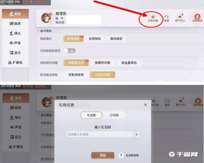 3、进入设置页面,右上角有个“礼物兑换”,点击打开后将复制的礼包码输入,再点击领取就可以获得礼包了。