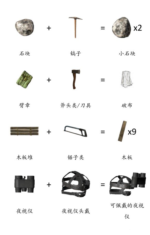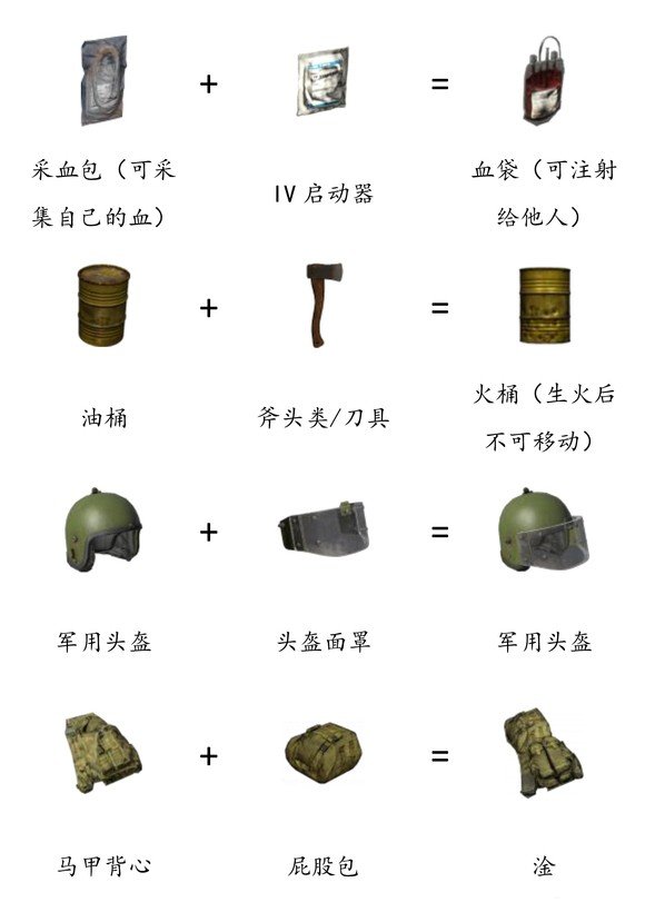 《DayZ》是一款多少求生游戏,没有规则,你只需要活下去,小心城内的丧尸以及——和你一样的求生者。为了更好的方便大家了解游戏内的合成机制,下面带给DayZ物品合成表一览。