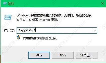 1、按下win+R 键,输入 %appdata%,如下图并点击确认。