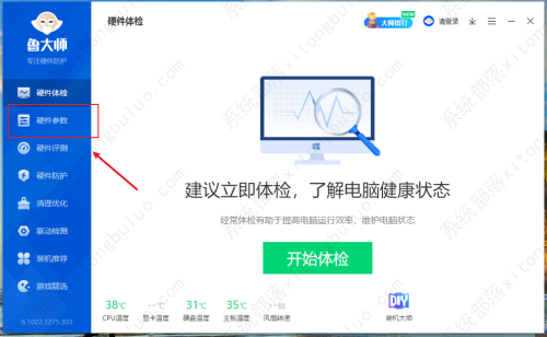 2、打开鲁大师主界面后选择点击硬件参数选项。