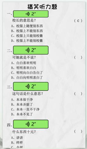 1、这一关是听听力选择正确答案,汉语真的是博大精深呀,哈哈哈