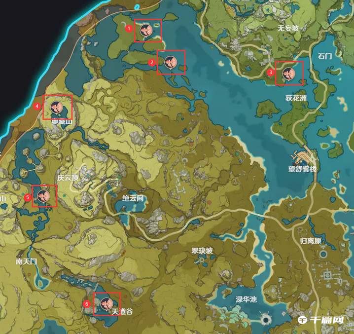 2、璃月地区-钓鱼点6个;