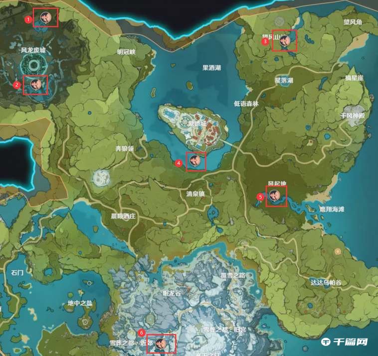 1、蒙德地区-钓鱼点6个;