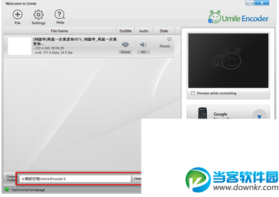 Umile Encoder在完成安装后双击桌面图标即可启动该软件,软件在启动后即可添加要进行转换的视频文件,用户可点击左上角的FILE按钮来添加要进行转换的视频文件,如下图所示: Umile Encoder 用户添加完视频文件后,需要对所要进行转换的视频格式进行选择,用户可点击上侧的设置按钮,点击该按钮后即可从软件弹出的窗口中设置要进行转换的视频类型,如下图所示: Umile Encoder 用户设置完视频输出格式类型后还要对视频转换后文件的输出目录进行详细设置,软件默认是保存在我的文档中,用户可以点击Change Folder按钮来对视频输出的目录进行重新选择,如下图所示: Umile Encoder 用户在进行了几项简单设置后即可进行视频转换,用户设置完毕后即可点击软件右下角的Start按钮来开始进行视频转换,如下图所示: Umile Encoder 小结:Umile Encoder界面简洁,操作简单,Umile Encoder最大的特点就是内置了许多视频终端设备的标准分辨率和格式支持,有助于我们转换出最适合自己设备播放的视频文件,如果你也需要一款视频转换工具的话就来试试它吧! 以上就是当客小编整理的而关于Umile Encoder的使用教程,更多软件教程欢迎关注当客下载站。 |