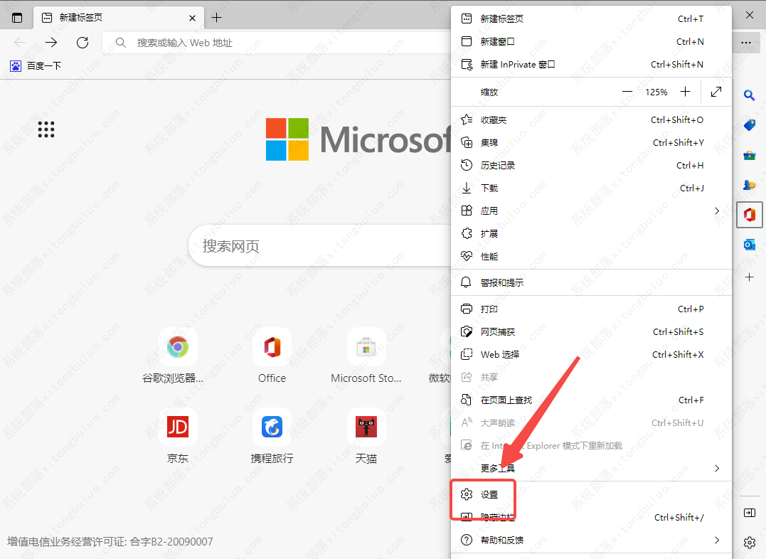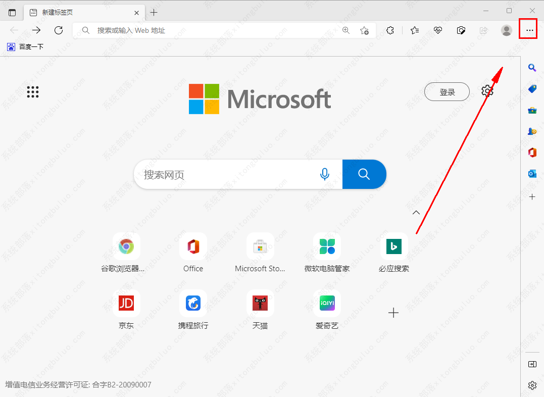 1、首先打开Microsoft Edge浏览器,点击右上角的三个点,如图所示。