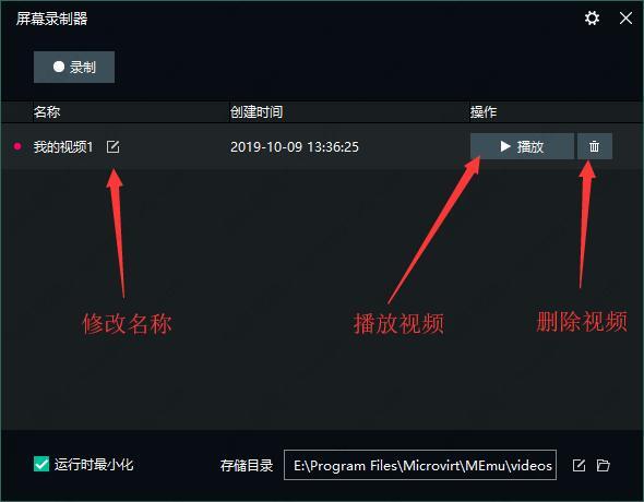 用户可以对其播放或删除。录制完的视频存储与图中所示“存储目录中”,用户可以对其浏览或者修改路径。