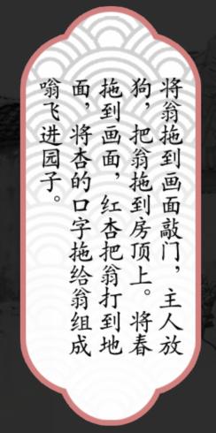 汉字魔法赋诗八答案解析,脑洞大开的谜题,全部由文字组成,小小文字蕴含大大智慧!以下为你分享汉字魔法让叶绍翁进门图文通关详细步骤,助你在字里行间轻松解谜。