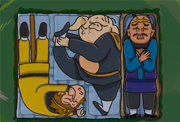 2、先把西瓜拖动给八戒吃掉,再点击沙僧变成劈叉的姿势,之后如图摆放即可;