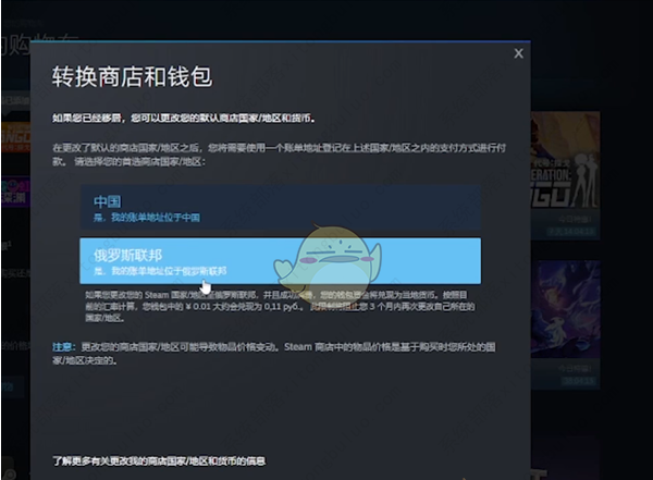 steam怎么转区?steam的转区需要用到加速软件,而且国区账号转区有较大的风险,在转区之后账号可能随时有被ban。本文将以uu加速为例展示如何转区,其实操作也是比较便捷的,想要转区但是不知道具体该如何操作的小伙伴们可以跟小编一起来看看下面的教程。 steam转区教程 1、在UU加速主页面中点击上方的上方的搜索选项,然后steam社区即可添加steam加速项。 2、点击加速上方的节点选项,在节点选项中点击上方的区服并选择俄区,然后选择一个俄区节点加速即可变为俄区的IP地址。 3、在steam中选择进入商店页面,在商店页面中任意点击一款游戏加入购物车,随后进入购物车。在购物车中点击上方的地区国家选项即可变更地区国家设置,变更之后商品的价格会变成相对应货币的价格,但是想要完全变更steam区域设置必须在相应的区域购买一件物品。所以只需要购买购物车的商品便可变更steam的区服。 |
