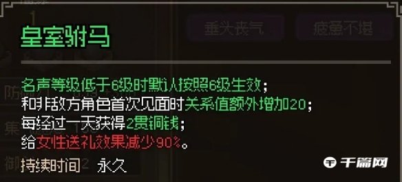 在大侠立志传这款游戏里有一个郡主比武招亲的任务,下面就是关于大侠立志传比武招亲攻略分享了,需要的小伙伴赶快来看看吧。 大侠立志传比武招亲攻略分享 大侠立志传比武招亲娶郡主完整流程攻略 1、首先要去大梁城参加天下第一擂 第一次:报名费500 打3场 胜利之后获得2000 声望+50 第二次:报名费5000 打3场 胜利之后获得 声望+100 第三次:报名费10000 打3场 胜利之后获得 声望+150 【衣物锦盒】 第四次:报名费30000 打3场 胜利之后获得 声望+300 【天机丹匣】 2、在第三次擂台比武后会触发剧情 比武招亲 连战10场 胜利后声望+300 最后还要接郡主一拳(等级和体质不能太低,不然会被打飞,剧情就断了) 3、接着这边选项选2就行了 给2W 能拿到【天泽丹】(福源永久+1)不够2W会失去身上所有的钱 4、完成大梁城擂台的比武招亲之后就可以去去霖安提亲了,康王会要求我们带来开化塔顶楼的龙首 5、开化塔难度很大,进之前先存档,趁守塔人睡着的时候可以直接进。二层触发剧情,选围攻胜利后声望+180,勇气+2,选静观其变就得单挑了,击杀服部总兵获得【无心流】【耍刀感悟】,蚍蜉城关系直接变成死敌。 6、开化3层需要打11个,打完后公公会进入2阶段再战一场,最终胜利后能拿到50000钱+【蟠龙钥匙】+【玄阴决】,旁边桌子上面还有本【玄阴化骨手】,箱子打开能就拿到十二兽环之一的【亢金龙兽环】了,上交后就能成亲了(后面可以偷回来) 7、成亲之后得到50000钱,康王关系+20,康王府关系+18,郡主关系提升80点,名声+500,并获得永久buff【皇室驸马】 8、邀请郡主入队可以获得【玲珑掌】,康王身上还有个【皇族玉佩】(你们懂我意思吧?) |