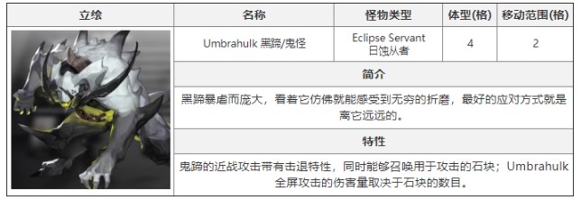 鬼蹄的近战攻击带有击退特性,同时能够召唤用于攻击的石块;Umbrahulk全屏攻击的伤害量取决于石块的数目。