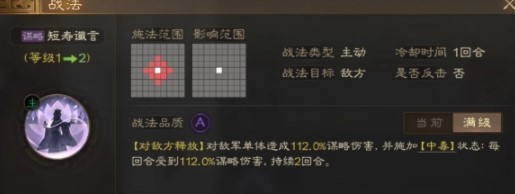 三国志战棋版是款热门的三国战棋游戏,这里有很多不同的战法和效果,今天整理了三国志战棋版短寿谶言战法的效果属性介绍,感兴趣的小伙伴赶紧来看看吧!