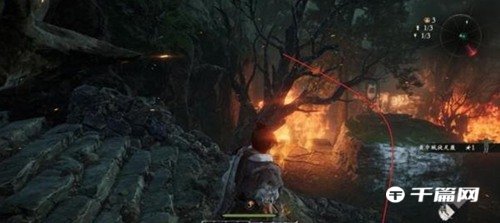 2、继续推进进入火场,击败敌人沿着左侧高台跳跃前进。