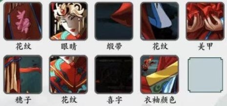 喜字,眼睛,花纹,灯笼穗,穗子,美甲,衣袖颜色,花纹,花纹,缎带