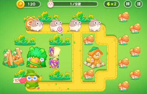 4、外道路的外围开始摆放进行攻击外面的蘑菇。