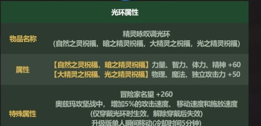 大精灵之祝福、光之精灵祝福——物理、魔法、独立攻击力+50