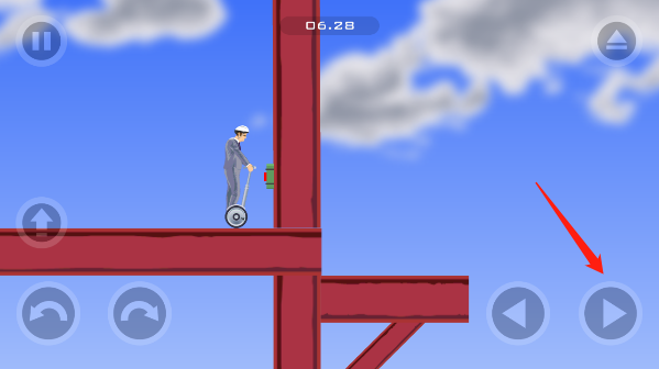 5、指向上方的按键是跳跃,在过路障时可同时点击向前进和跳跃。