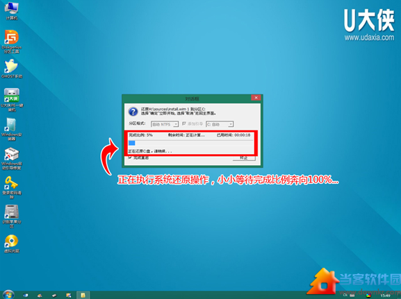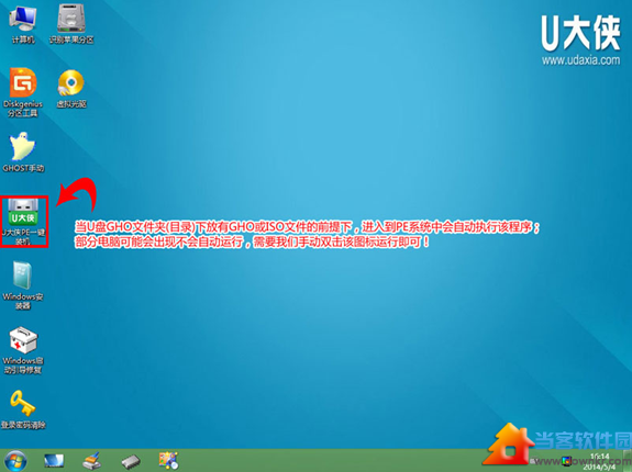 2)当选择到“【01】 运行U大侠Win8PE增强版”后,按下车键进入winpe系统的界面,如下图: