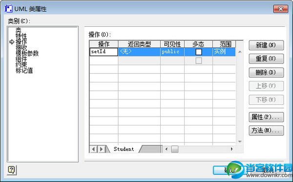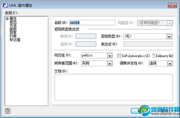 (02) 选中“setId”,点击“属性”,弹出“UML操作属性”对话框。如下图所示。