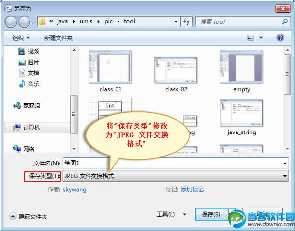(01) 点击“文件” -》 “另存为”,弹出“另存为”对话框;然后将“保存类型”修改为“JPEG 文件交换格式”。如下图所示。