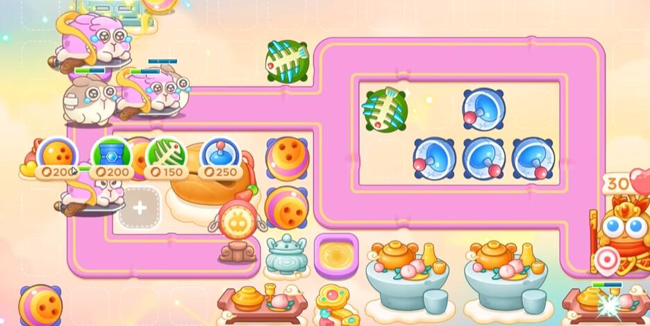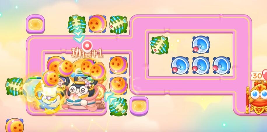 3、保龄球打萝卜门、鱼刺打桃子建立雷达,雷达打香炉和围栏,接着打钱袋。