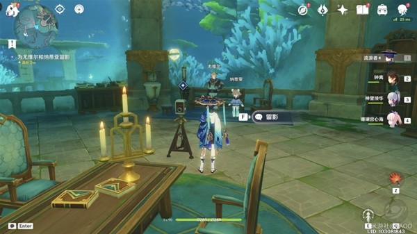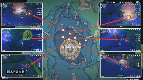 《原神》4.2枫丹声望任务得偿所愿的寻宝之旅攻略2023-11-14 17:56:27 来源:米游社论坛 作者:NAOO 我要投稿《原神》4.2版本增加了新的声望任务——得偿所愿的寻宝之旅,完成后可以获得一个珍贵宝箱,也能解锁一个水神瞳。请看《原神》4.2枫丹声望任务得偿所愿的寻宝之旅攻略,希望对大家有用。 任务概述:在海面上解救遇难的尤维尔,然后寻找宝藏 任务奖励:1个珍贵宝箱+1个神瞳+30原石+神秘书页10 预计用时:15分钟 前置任务:已完成世界任务「藻海的寻踪」可接取 1、此时卡布狄斯堡已然沉入海底,在其西侧的海上救起尤维尔,与尤维尔对话接取任务 2、回到遇难位置,下潜到水底,寻找6个道具。 3、回到锈舵找尤维尔交付,对话完成后获得神秘书页 4、接下来,根据指引前往水下避难所 5、进入避难所后,获得一个珍贵宝箱和一个神瞳。 然后,调查三处发光点 调查完后,与尤维尔对话,用留影机拍照后,完成任务。 |