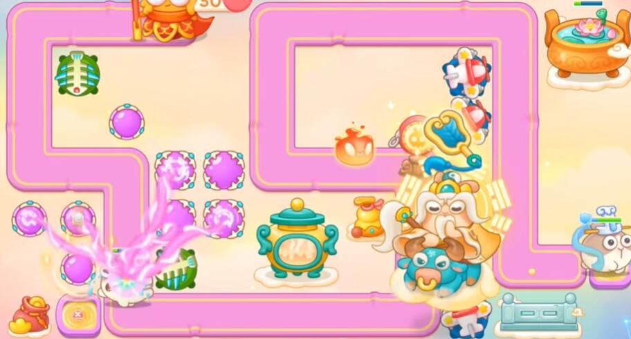 5、老君出来之后,飞机打右上角荷花缸,接着出葫芦立马打掉,找准时机打左下角钱袋。