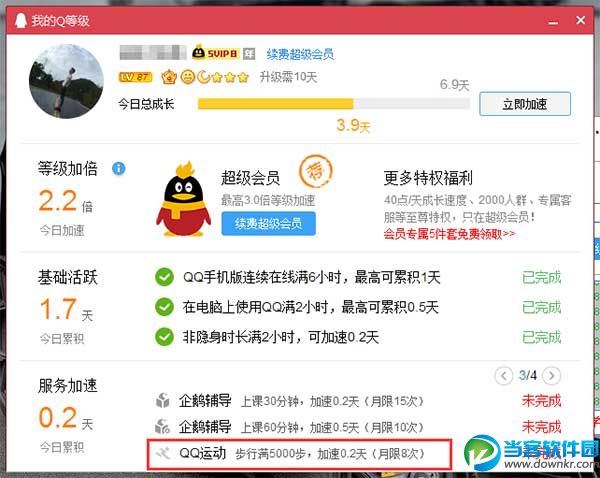 QQ等级加速新上线QQ运动步行满5000步加速0.2天