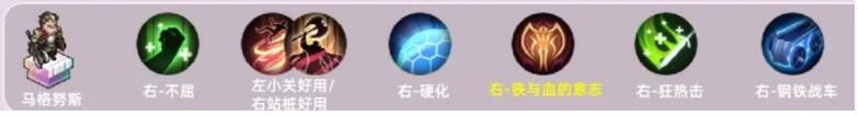 右-不屈、左小关好用/右站桩好用、右-硬化、右-铁与血的意志、右-狂热击、右-钢铁战车。