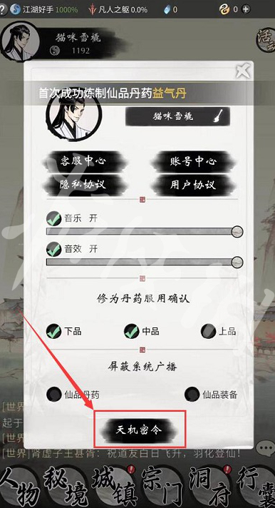 在头像中下拉找到天机密令。