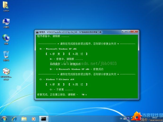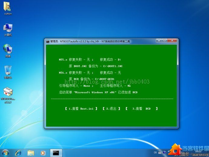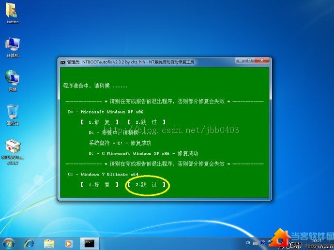 一开始直接在win7下用Ghost安装xp到f盘。然后发现,重启时直接进入win7,不进入xp。 然后进pe重新用Ghost后依旧不进入xp。 上网查找原因后发现是用NTBOOT软件修复xp引导目录。 一开始找的非常麻烦,还需要把C盘设置为隐藏区域啥的,吓得我没敢整。 后来找到一个差不多,我就按照这个办法来了,前面的都直接省略掉,装完xp重新进入win7后,我就直接下载NTBOOT这个软件,并点手动修复(一开始下载的是2.0.X版本的,不带手动修复的,后来下载的2.5.7版本的就有了) 用管理员权限打开,点击手动修复: 弹出提示修复windows xp x86启动项,点击修复: 然后跳到windows7 ultimate 启动项,选择跳过: 显示跳过界面如图: 最后界面如图,不用管他: 修复成功。然后重新启动时候就出现选择启动项的菜单了,噢耶! |