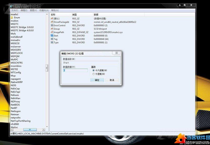 在win7系统下开启AHCI模式首先需要更改注册表,具体操作方法:按下Windows键+R键输入“regedit”回车进入到注册表编辑器。2.在“注册表编辑器”窗口左侧标题栏定位至HKEY_LOCAL_MACHINE\SYSTEM\ CurrentControlSet\services\msahci分支,然后在右侧窗口,双击“Start”。3.在弹出的“编辑DWORD值”对话框,将“数值数据”框中的值由3改为数字0(如下图),单击“确定”按钮。并关闭“注册表编辑器”窗口并重新启动电脑。
