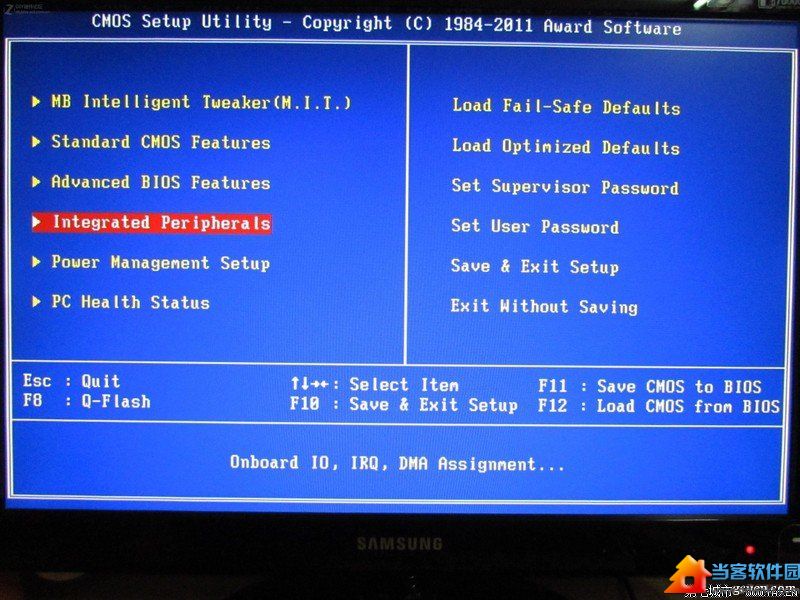 更改完注册表就可以重启系统了,在系统启动时连续按3-5下Delete进入bios,选择Integrated Peripherals回车进入。