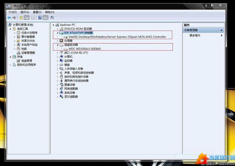 如果不出意外,在这次的重启过程中,细心的朋友就会发现,在win7标志那个画面开始直到进入桌面的时间缩短了不少,确切的说是流畅了不少。哈哈,这就意味着你的AHCI模式已经开启,赶快进入计算机-管理里面去看看吧,成功开启AHCI后的的计算机-管理面板-IDE ATA/ATAPI控制器下的显示状态,非常的清爽。没有开启AHCI模式在这里显示的是IDE