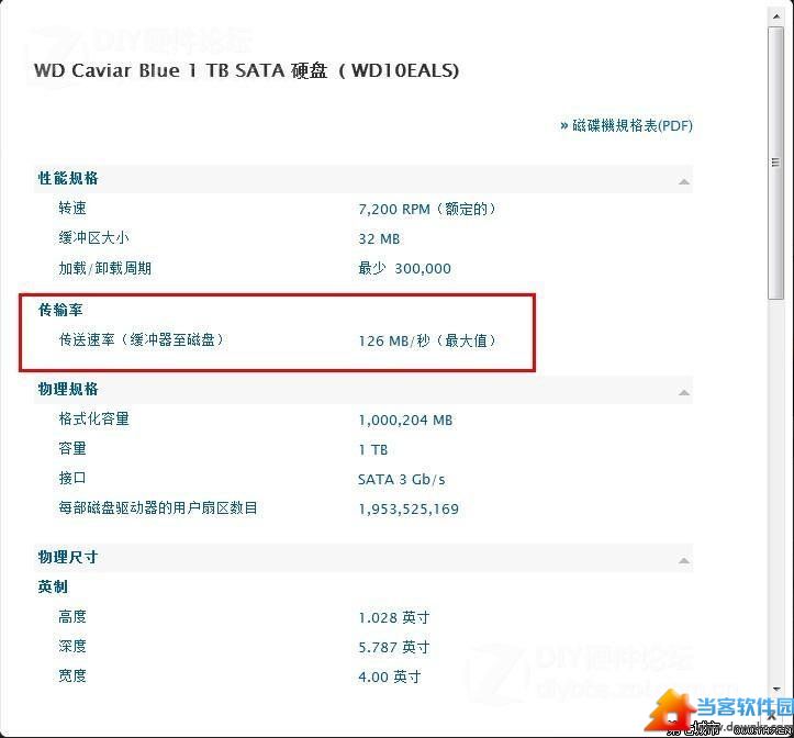 先上一张西数1T蓝盘(WD 10EALS-00Z8A0)的官方数据表