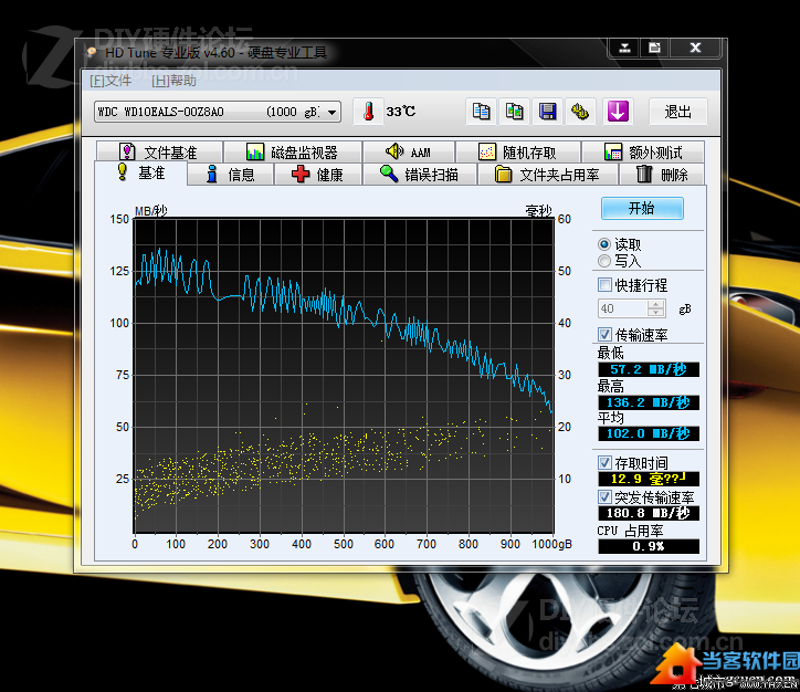 再上开启AHCI模式后的西数1T蓝盘基准测试图,曲线图方面比IDE模式下平稳了一些。至于读取速度么,用了半年多BT了几百G的电影还能有此表现,我该说自己RP好还是说开启AHCI模式后硬盘真的给力了?