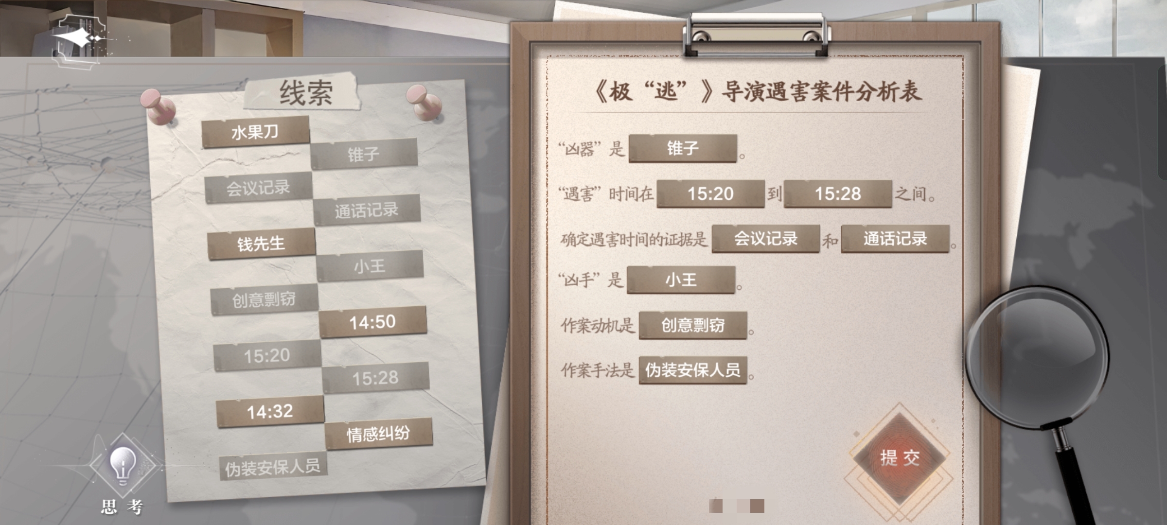 2.(失败结局)不必收集线索,“案件分析表”直接交白卷达成失败结局.