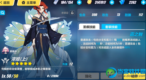崩坏3浓姬圣痕5月12日上线精准补给中抽取,浓姬圣痕除了增加生命值和攻击属性加成之外,浓姬圣痕三件套技能还有冰元素控制和减速,可以说御神装勿忘的毕业圣痕之一,下面带来崩坏3浓姬圣痕三件套属性技能一览,浓姬圣痕女武神搭配推荐。 崩坏3浓姬圣痕三件套属性技能介绍 浓姬上