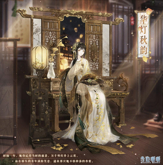 《奇迹暖暖》华灯秋韵套装介绍 ——2024福袋·华灯秋韵—— 结彩悬灯,火树星桥,长街人群熙攘,笑闹声不绝于耳。 在如昼灯火之中,有情人于桥头相依偎。 【华灯秋韵】含正常姿势与特殊姿势,全新妆容“景星庆云”,精美面饰“前缘浮香”,精美可移动摆件“长夜流光”、“云窗良宵”,达成套装成就可领取特殊姿势部件。 最后,愿这场时装盛宴为您的时尚之旅增添一抹绚烂的色彩。在这个梦幻般的世界中,与时尚相伴,愿您的每一次穿搭都是一场独特的演绎。时光荏苒,时尚永恒。 |