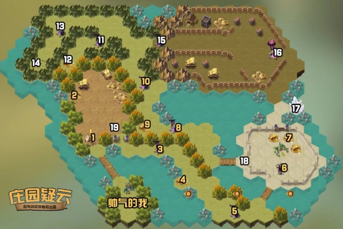 剑与远征庄园疑云攻略 路线: 按照数字顺序 一个个点击过去 这样你就通关啦 沿路的箱子记得拾取 触发剧情的话再点击步骤即可 背景故事: 巴克老爷富甲一方,但他的庄园终日被强盗骚扰,烦不胜烦。他多次寻求帮助,都没得到回应。终于罗宾汉踏上了这片土地,不是因为巴克老爷开出的高昂酬劳,而是他得知,这里居民的孩子失踪了… 在《剑与远征》的庄园疑云冒险中,愿你探索未知,享受冒险的乐趣。勇者们,一起携手征服庄园的谜团,揭开这个新奇境的神秘面纱吧! |