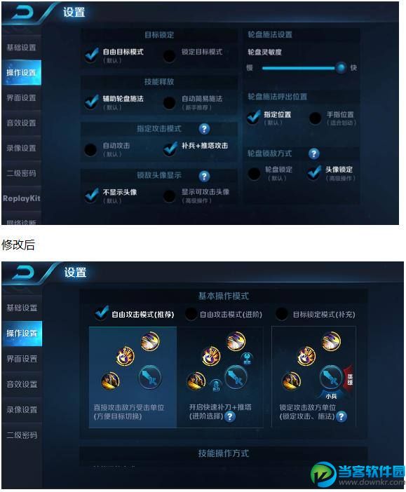 内文字消息设置 为了让新进召唤师更专注的体验游戏内容,在更新后新注册的用户,会默认将局内文字交流功能设置为关闭状态,如果有需要可以随时在设置界面-基础设置,找到“局内文字消息”设置项开启。 4.电量提示调整 根据玩家反馈,将低电量的变黄提示,由原来的电量低于50%,改为在电量低于30%时提示。 5.操作设置界面展示调整 根据玩家反馈,对操作设置界面进行重新的版式设计,更易于对操作模式的内容理解和使用选择。 修改前 6.常用英雄显示 常用英雄增加最少场次限制,使用次数超过10场的英雄才会显示在常用英雄界面中。 7.技能倒计时小数显示调整